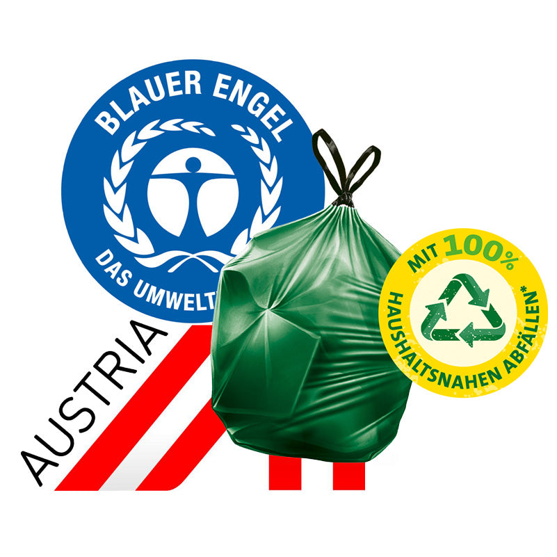 - Die empfohlenen Toilettenbeutel bestehen zu 100 % aus recyceltem Plastik (außer Farb- und Zusatzstoffe) aus haushaltsnahen Abfällen und sind mit dem "Blauen Engel" zertifiziert.